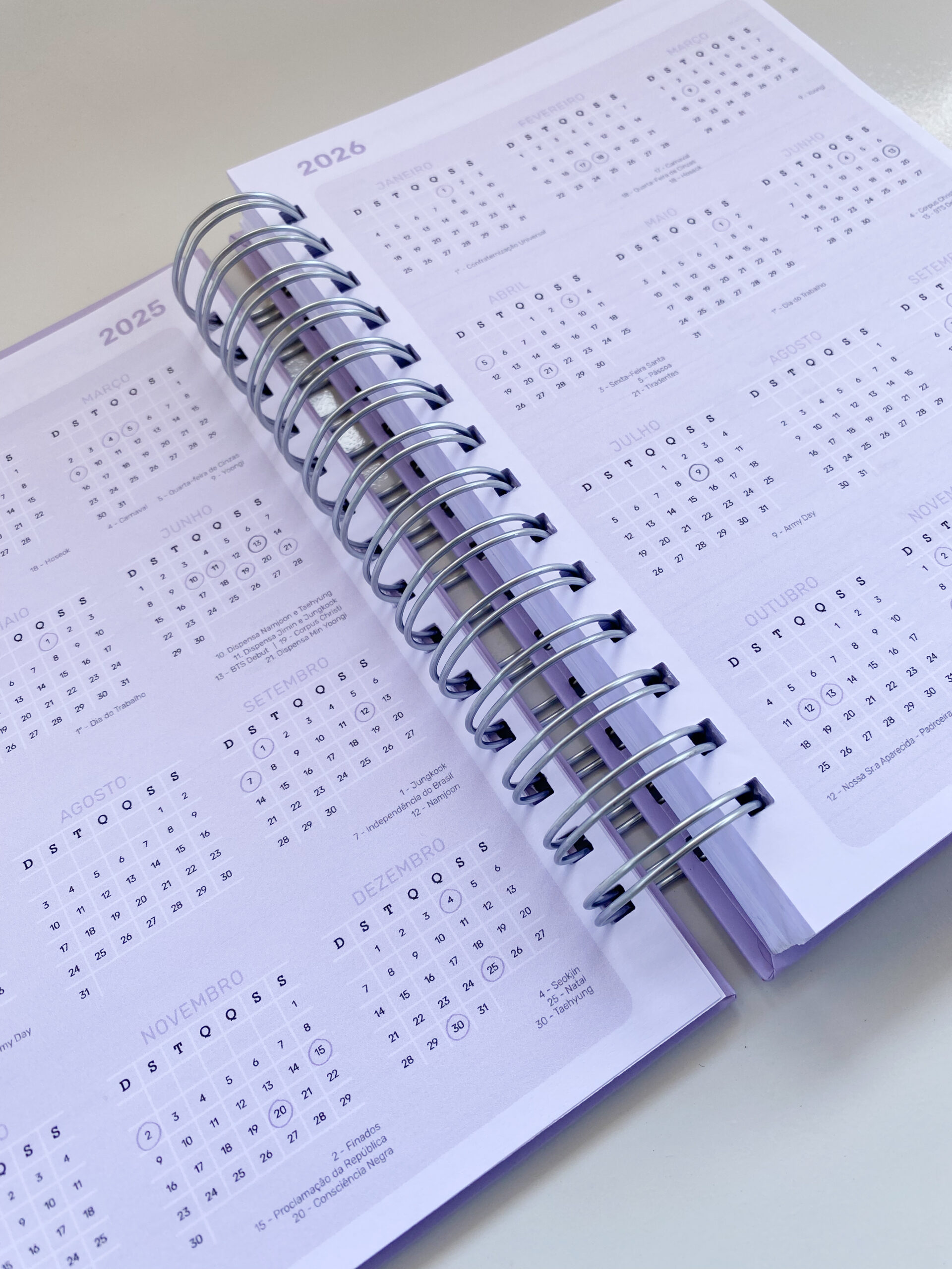 calendários de 2025 e 2026