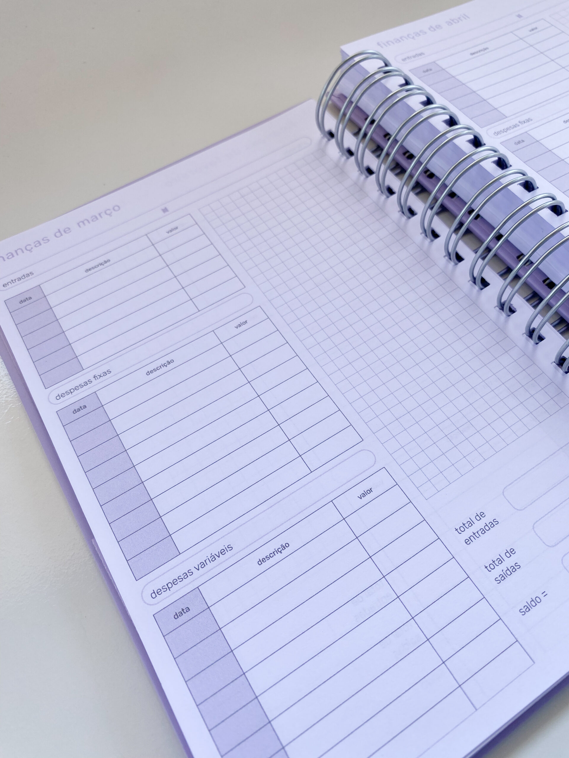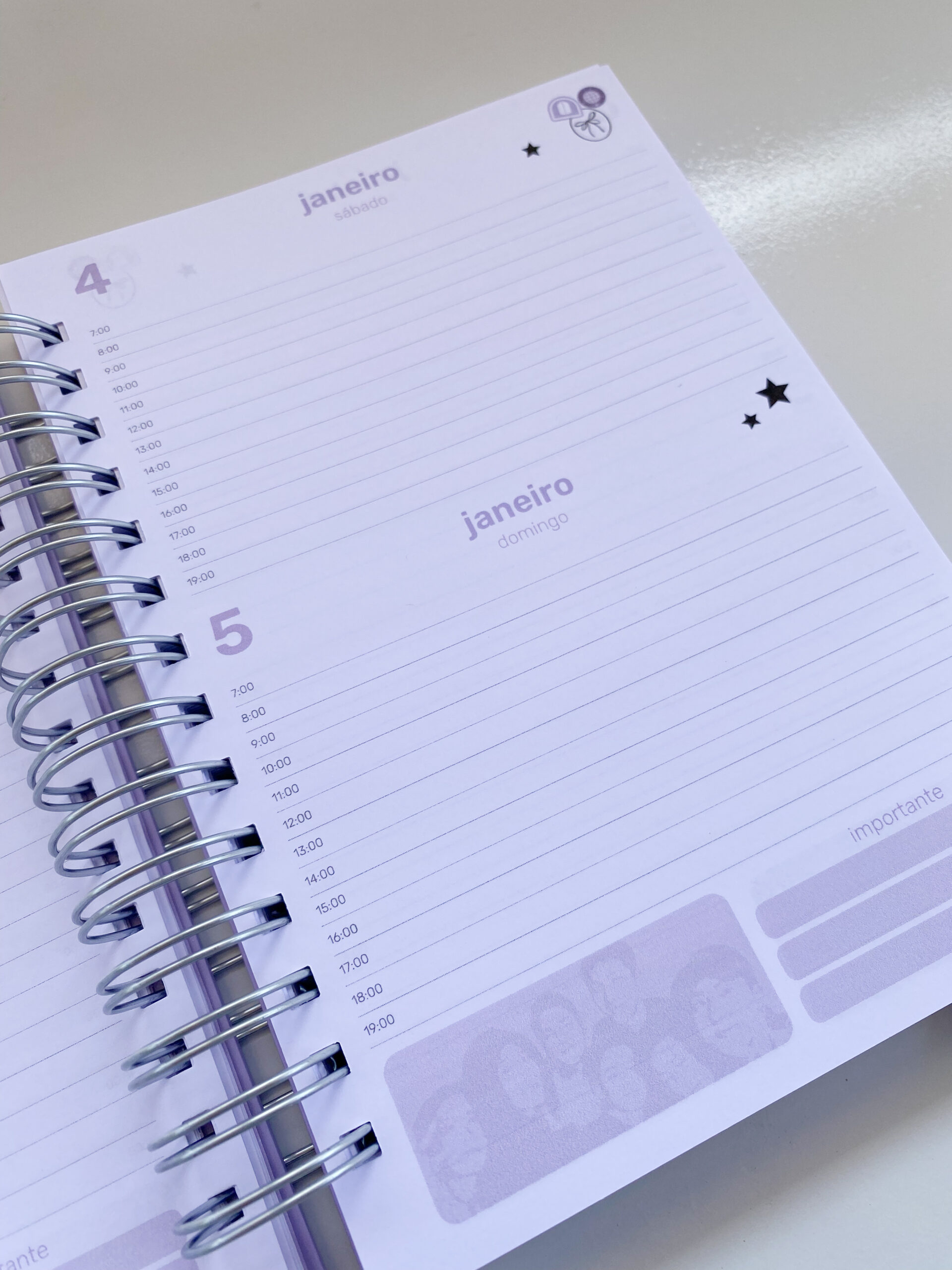 com 1 dia por página e o sábado e o domingo juntos