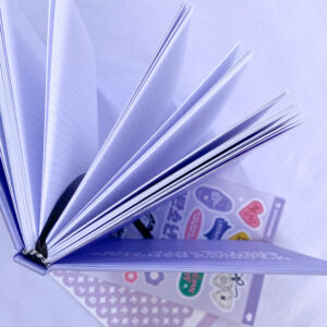é costurada á mão e você pode escolher entre folhas pautadas, quadriculadas ou pontilhadas.
